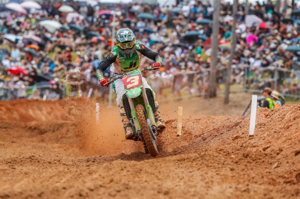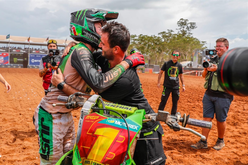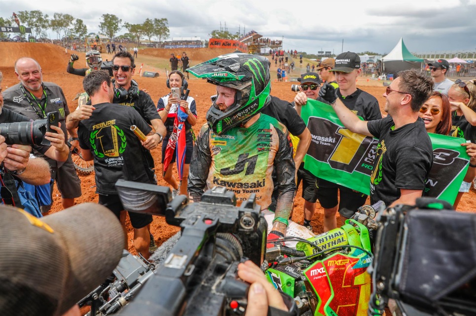 Romain Febvre, de l'équipe Kawasaki Racing Team MXGP, a scellé la campagne du Championnat du Monde de Motocross FIM MXGP 2025 en remportant son deuxième titre mondial MXGP et le premier pour la Kawasaki KX450-SR avec une course tactique pour terminer quatrième lors de la première manche de la finale de la série à Darwin en Australie.